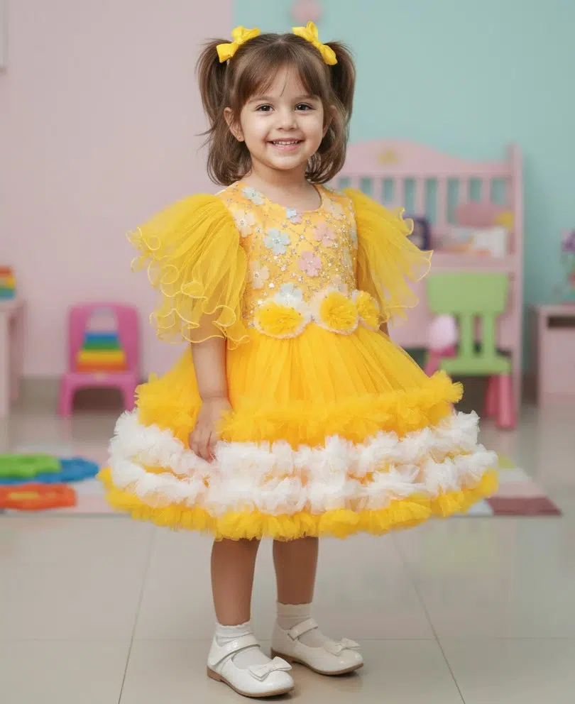 Girl’s Luxury Ruffled Yellow colour Party Dress